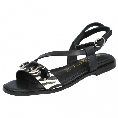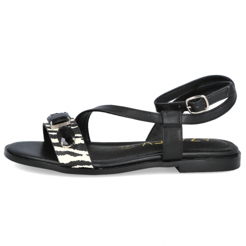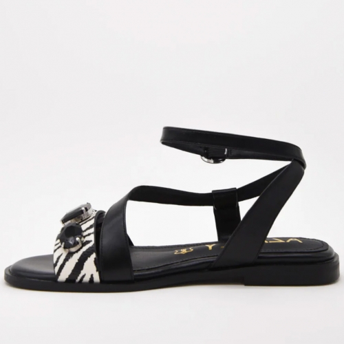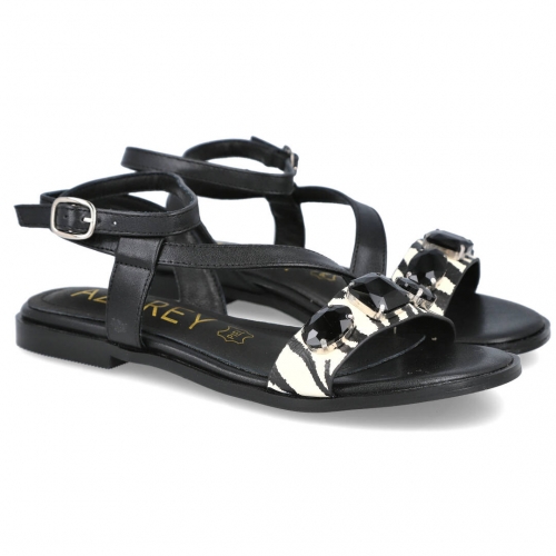 AZAREY 494J744Z Sandalias planas negras con estampado animal print y pedrería planta piel