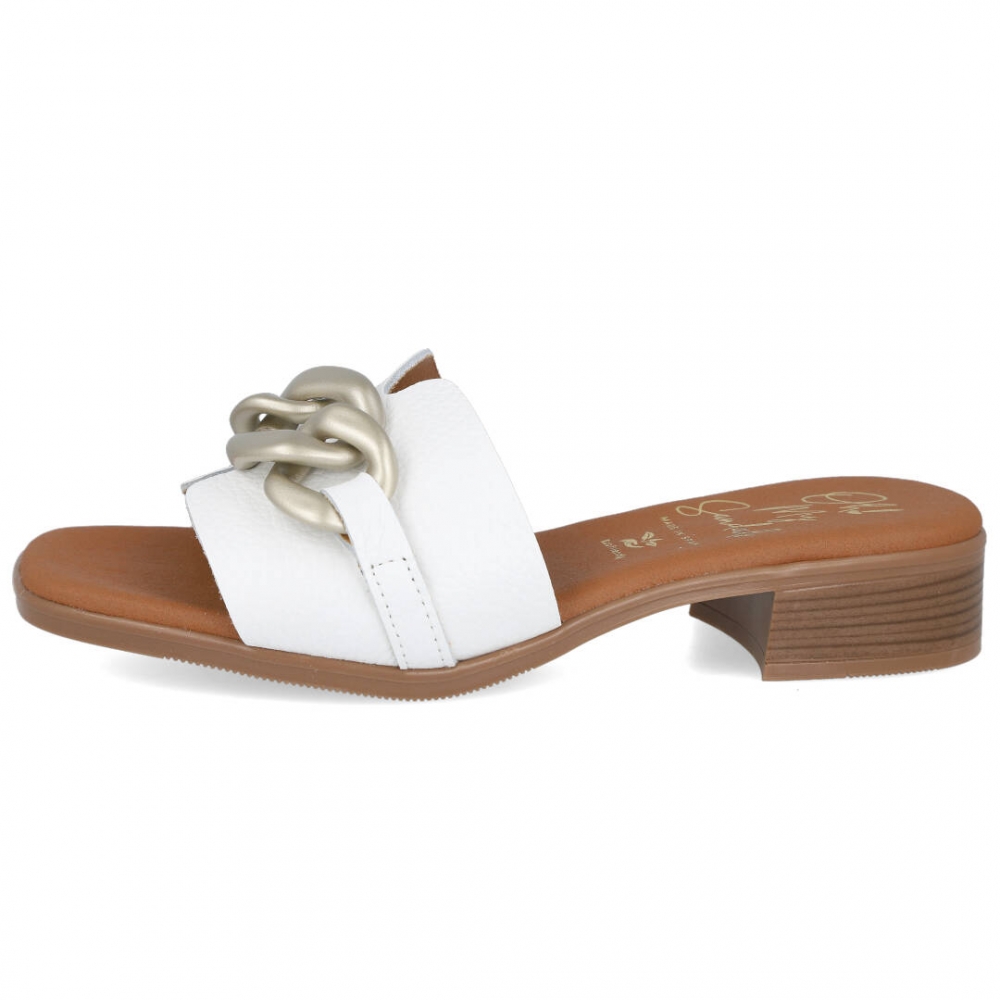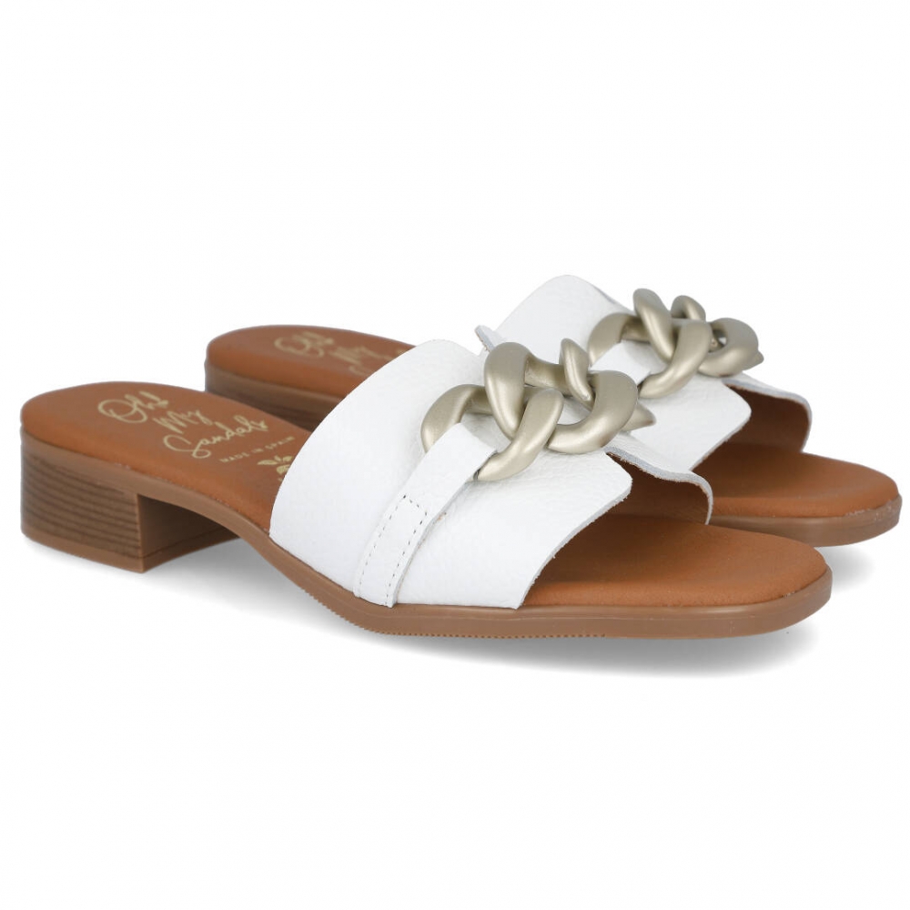 OH! MY SANDALS 5608 Mules de tacón bajo con eslabones metálicos de mujer