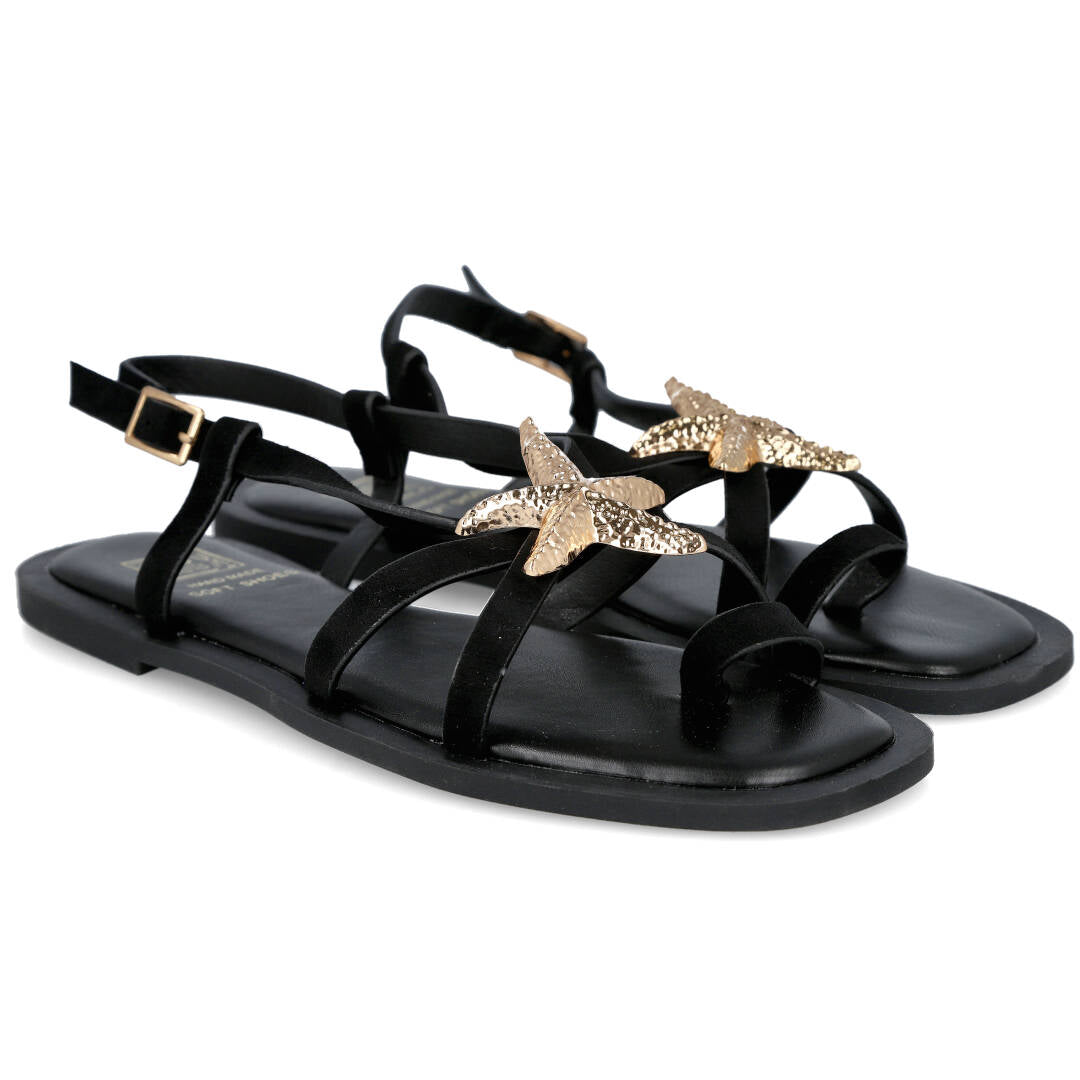 ¡Hola! Si buscas la sandalia perfecta para darle un toque chic y cómodo a tus looks de verano, ¡has llegado al lugar indicado! Te presentamos la sandalia plana negra de la marca BUBBLE BOBBLE, modelo M2696.