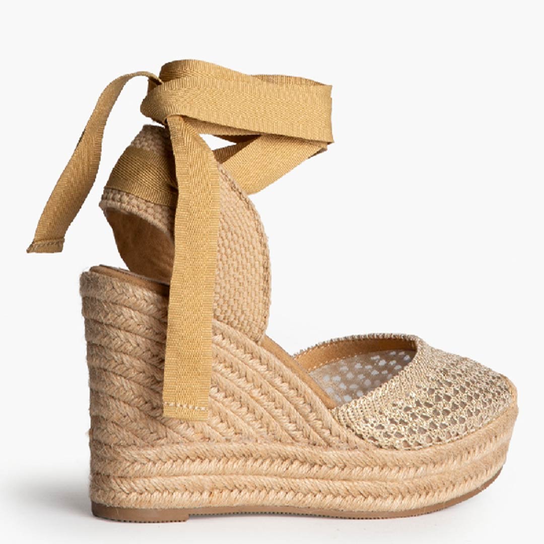Su vibrante color dorado aporta un toque festivo y sofisticado, perfecto para realzar tus outfits de temporada. La puntera de rejilla no solo añade un detalle de tendencia, sino que también garantiza una excelente transpiración, ideal para mantener tus pies frescos durante los días más calurosos.