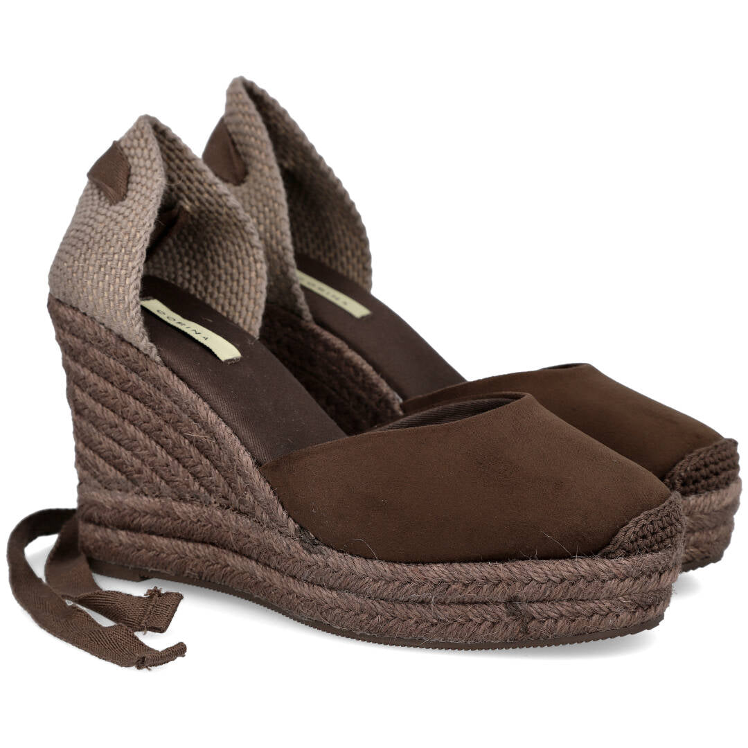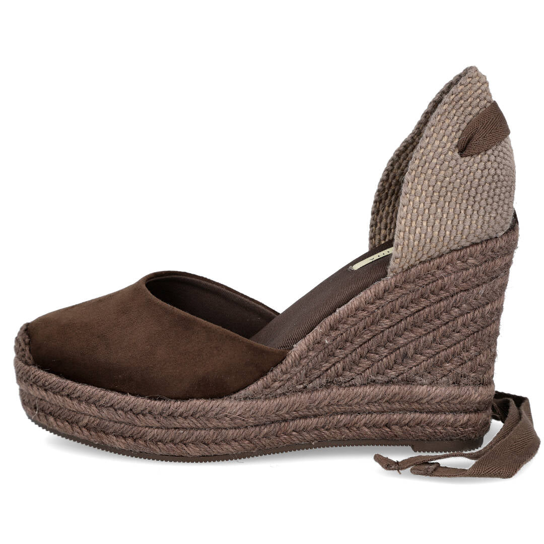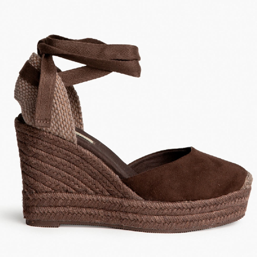 Confeccionadas en suave ante en un precioso color marrón café, estas cuñas son el complemento perfecto para dar ese toque chic a cualquiera de tus outfits. Su diseño se ve realzado por unos coquetos lazos que añaden un aire femenino y sofisticado.