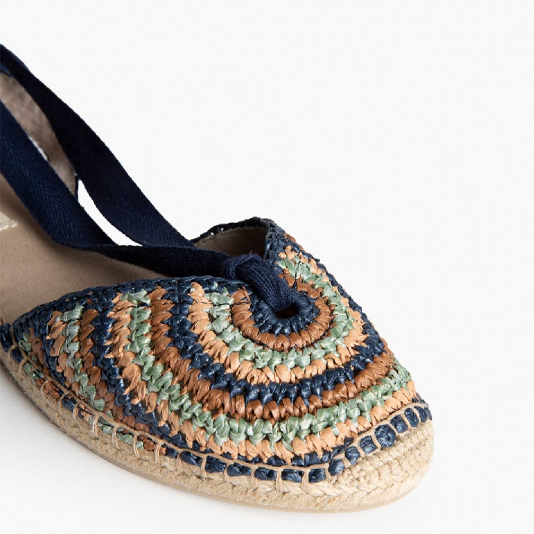 - Detalles: Trenzado circular y lazo al tobillo