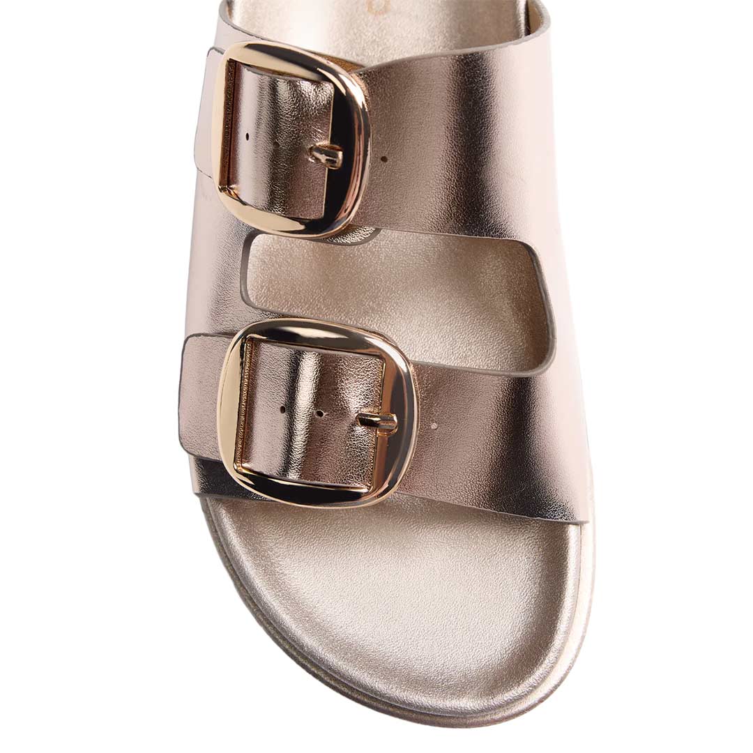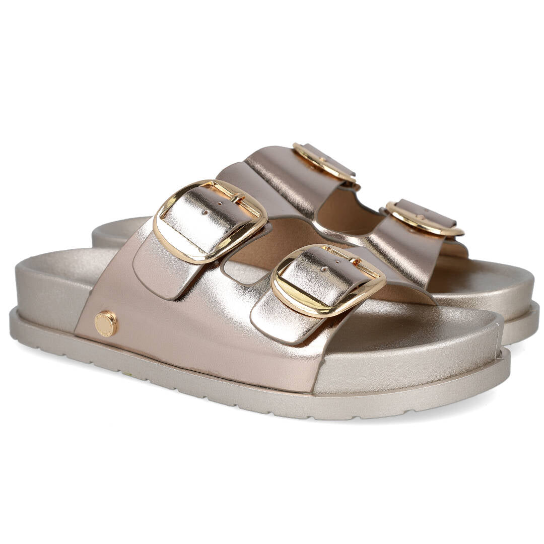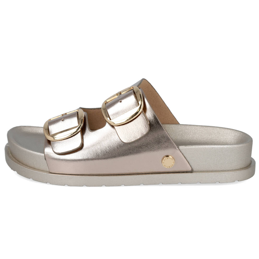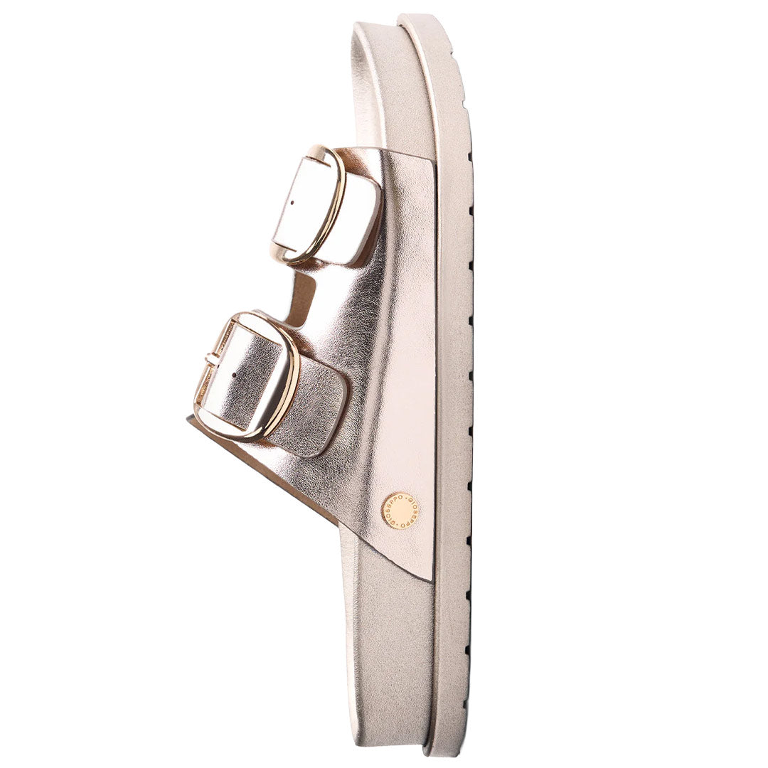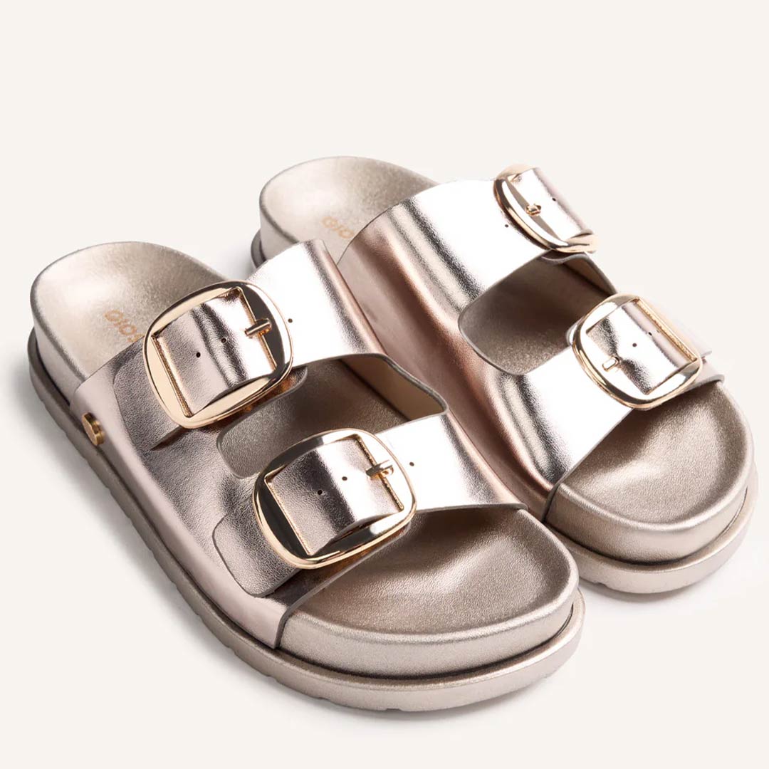 El vibrante tono platino de estas sandalias las convierte en el complemento ideal para cualquier ocasión, desde un paseo casual hasta una salida nocturna. Son el calzado perfecto para añadir un toque de sofisticación sin renunciar a la comodidad que buscas.