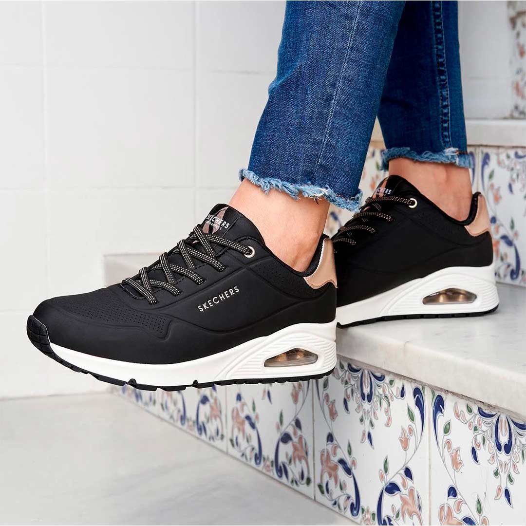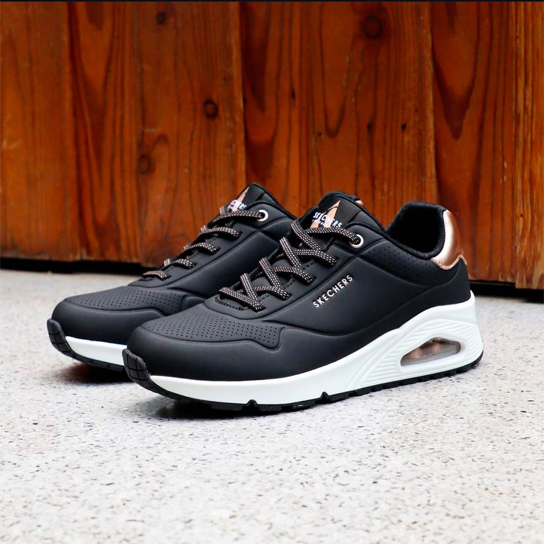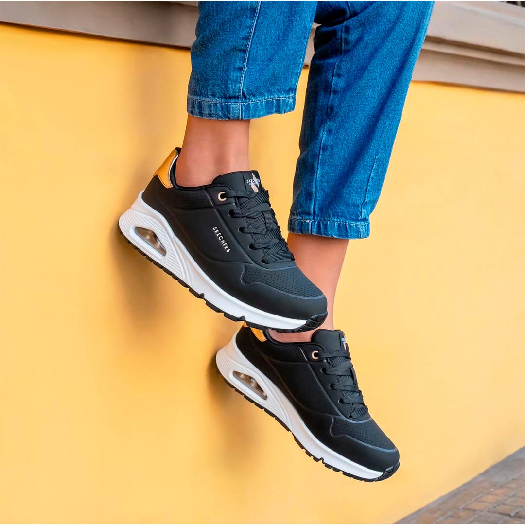 Las SKECHERS Uno Gen1 Shimmer Away 310545L NEGRO-ORO de SKECHERS aguantan el recreo, el entreno y todo lo que venga después. Suela flexible que cuida el pie mientras crece.